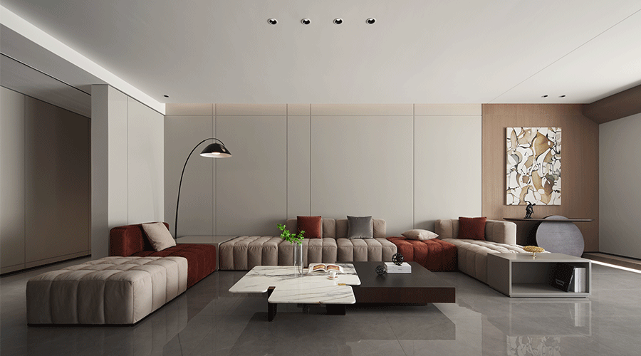 客廳的吊頂設(shè)計(jì),采用了懸浮無(wú)主燈加雙眼皮的樣式。簡(jiǎn)潔的線條,時(shí)尚的造型,讓整個(gè)空間顯得更加有層次感。晚上,燈光亮起,營(yíng)造出一種溫馨而浪漫的氛圍