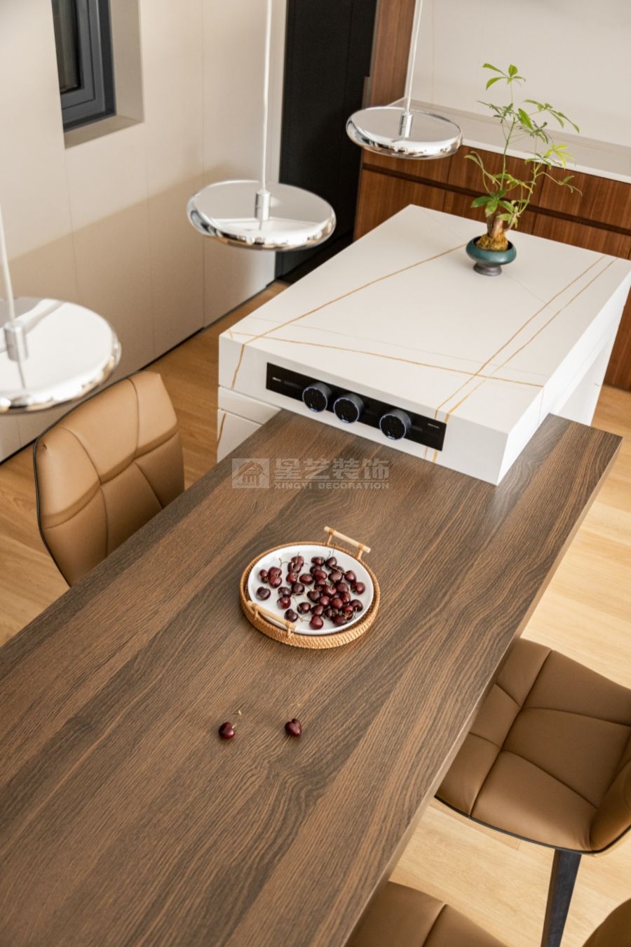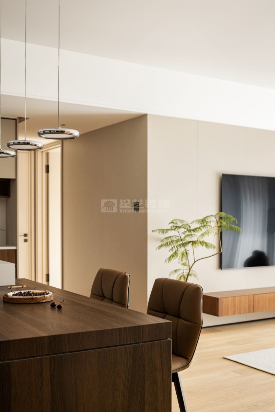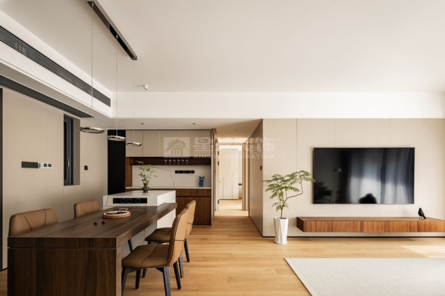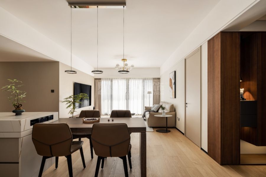 這是為兩位伉儷設(shè)計(jì)的婚房,溫馨、舒適、環(huán)保為主旨。把原小的儲(chǔ)物間開(kāi)放出來(lái),把餐廳做為核心:用餐、交流、聚會(huì)多功能的社交餐區(qū),不僅擴(kuò)展了空間,又增強(qiáng)了空間的靈動(dòng)性。