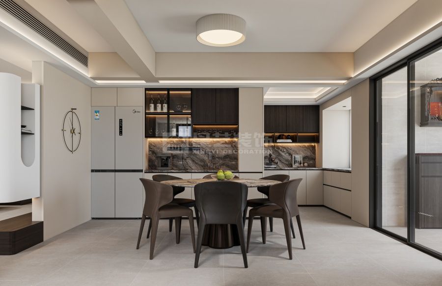 本案采用現(xiàn)代簡約+輕奢質(zhì)感的設(shè)計(jì)風(fēng)格,以柔和的米白、淺棕為主色調(diào),搭配深棕木色與大理石紋理,營造出高級且溫馨的居住氛圍。 整體設(shè)計(jì)既滿足了現(xiàn)代家庭的功能需求,又通過材質(zhì)、色彩、燈光的細(xì)膩搭配,呈現(xiàn)出“舒適與質(zhì)感兼?zhèn)洹钡木幼◇w驗(yàn)。